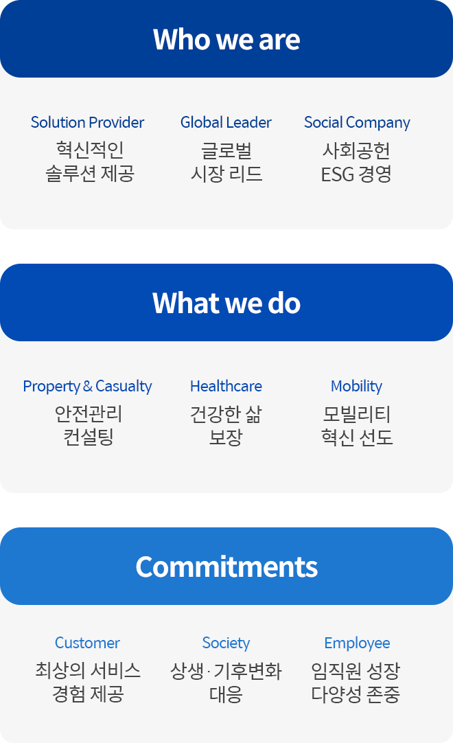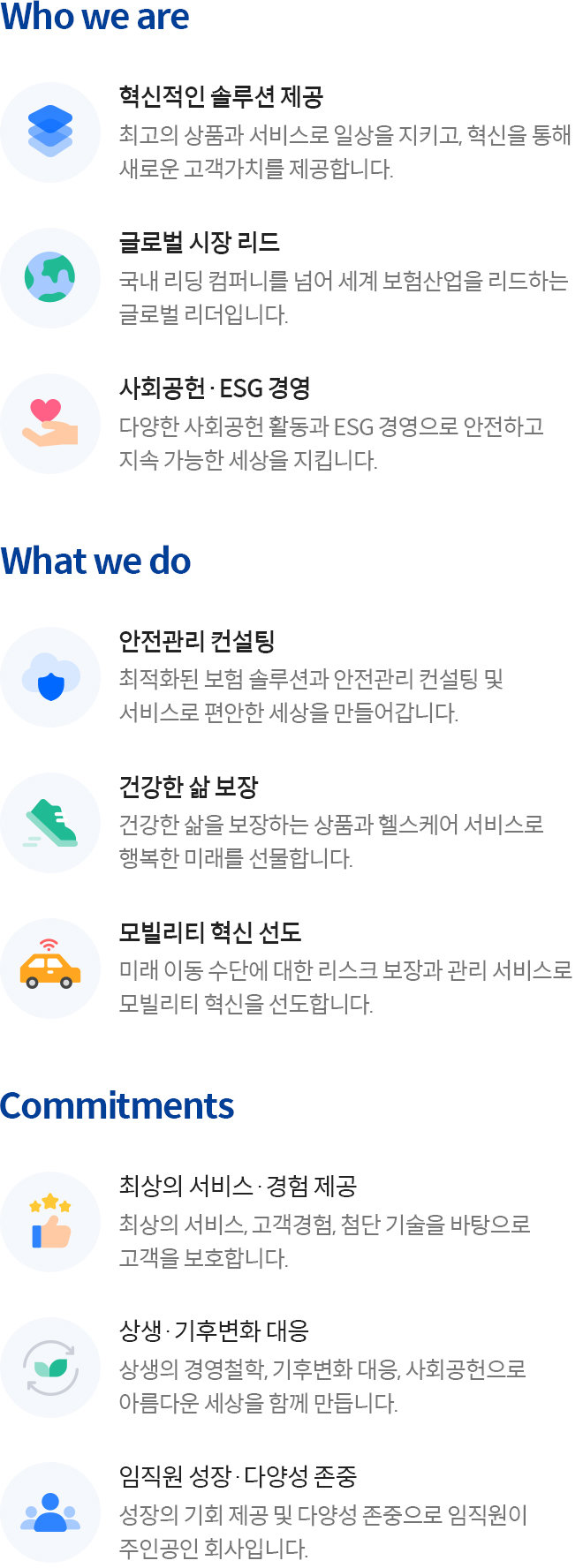 국내 리딩 컴퍼니를 넘어 세계 보험산업을 리드하는 글로벌 리더입니다.