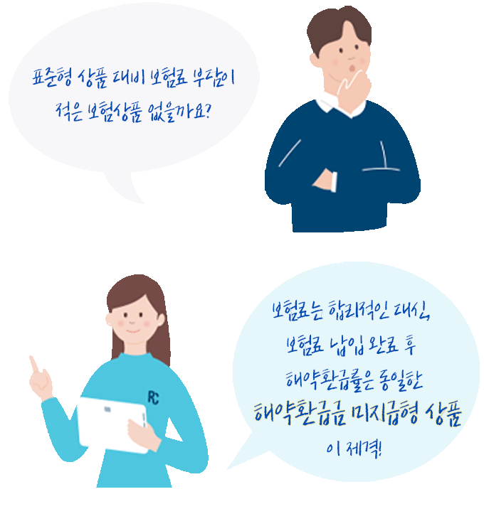 보험료는 합리적인 대신, 보험료 납입 완료 후 해약환급률은 동일한 해약환급금 미지급형 상품이 제격!